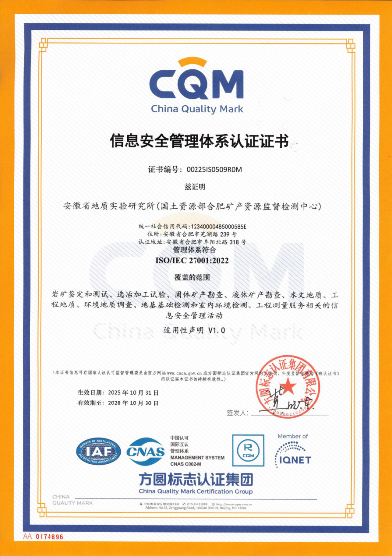 信息安全管理体系认证证书