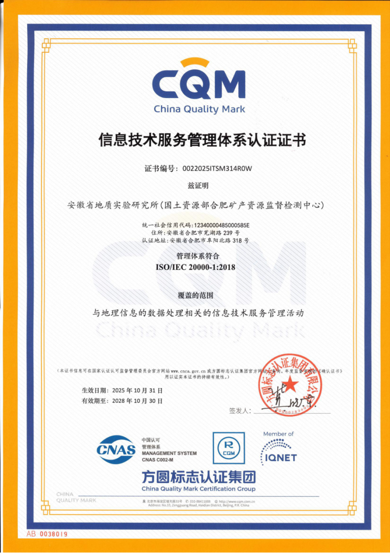 信息技术服务管理体系认证证书